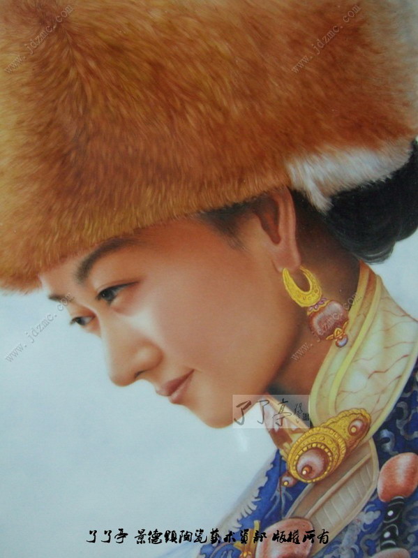 在这幅作品中.西藏女子头戴羊皮帽、身穿蓝色藏族传统服装,双手放于弯刀鞘上,双眼遥望西边,嘴角微微上扬,这样生动的面部表情不由得让观众看懂了什么是幸福,什么是希望。