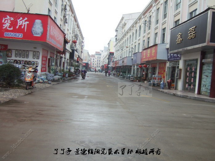 景德镇西客站旁边是中国陶瓷城,中国陶瓷城一直都是政府行为留下的一个疮疤,以前说室内不能卖陶瓷只能到中国陶瓷城等几个市郊的地方,于是不少人投资买房。可是政令难以左右市场,市内卖陶瓷的照样卖,因而中国陶瓷城一度凋零。最近一年来,中国陶瓷城的生气有所恢复,前面两个街道出租和开门率很高,可是后面还是大批、大批的空着。今年过春节估计中国陶瓷城的商家会营业到大年三十。
