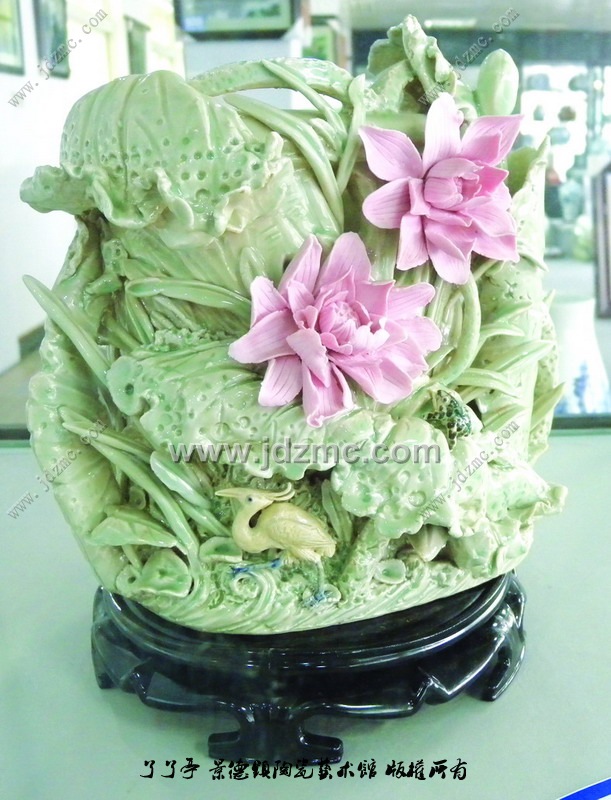 在展览过程中,刘超鸿特别向观众绘声绘色介绍自己的堆雕笔筒作品,他说堆雕陶瓷作品是此次展览的重头戏。由于堆雕在制作时技术含量要求很高,堆雕在制作过程中是不能翻模的,而且制作一件堆雕作品需要2个多月的时间,难度大,每一个制作步骤都要精细,思维要活跃,要有创新,所以,每一件堆雕作品都是孤品,不能百分百仿制。