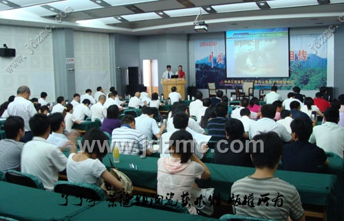 7月9日,在党委宣传部徐胤嫚老师、党委组织部祝红想老师的带领下,实践队的成员们来到了中共江西省委组织部井冈山党员培训基地黄洋界宾馆,同启东市和兰州市的100余名党员干部一起接受革命传统教育互动教学课程的培训。课上,队员们认真聆听了红军后代们的访谈报告。王生茂老师讲述了他祖父“井冈双雄”之一的王佐从组织绿林队伍反抗土豪劣绅到跟随毛泽东建设井冈山革命根据地的艰辛历程,并从被王佐、袁文才错杀事件中,吸取坚持实事求是、一切从实际出发、敢于创新、突破传统观念束缚的经验和教训。队员们还倾听了上海知青杨洁如老师为井冈山区的孩子们默默奉献五十年青春和热血的感人事迹;从甘于贫穷、放弃70万元报酬无偿捐献祖父遗作《送儿当红军》的江大姐身上,体验不为名利的崇高品格。在互动环节中,实践队的成员们登台同现场的党员干部一起向江大姐学唱经典红色歌曲,展现当代大学生的风采。最后,我校党委宣传部袁老师为现场嘉宾们献上了景德镇陶瓷学院的《校史》等纪念品。