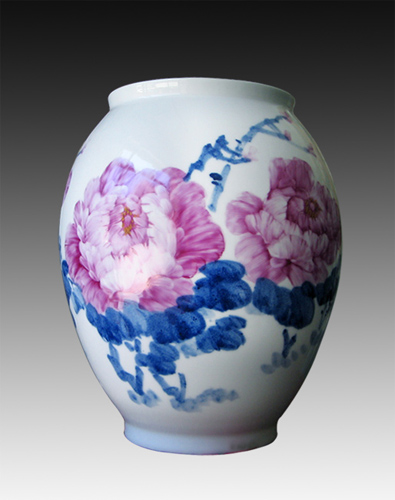 今年上半年,从深圳举办全国首届工艺美术“百花奖”中传来喜讯;我市青年陶瓷美术工作者胡文峰女士的作品《鱼乐图》荣获铜奖,据了解,此次比赛要求高、参赛条件选拔比较严谨,无论从参赛的规模上还是参赛的要求上都具有突破性、权威性。胡文峰是一位从事美术教学的老师,她由于从小受其家庭影响,自幼便与陶瓷艺术结下了不解之缘。她从小立志当一名画家,“功夫不负有心人”,她最终如愿以偿,2001 年开始在江西陶瓷工艺美术学;任教,从事着近十年的美术执教。在三尺讲台上,她是一名极其负责的老师。敢于创新、探索是她执教生涯的独特风格,如果说讲台是她理论的传播阵地,那么画室则是她实践展示的平台。她教学最大的特点就是不照本宣科,她每年向学校要求组织学生写生两次,她通过写生课程充分调动学生的想像力和创造力,挖掘学生的艺术潜力,指导学生正确理解理论知识与实践的结合。在教学上,她有着“巾帼不让须眉”的豪情。尤其是在对艺术的追求上更具有独特的个性。从美术到陶瓷绘画,是一种材质的转型。有着扎实绘画基础的她通过一段时间对陶瓷各种颜料的掌握,很快就入门了。刚开始进行陶瓷绘画之时便对重工花卉动物颇感兴趣。在探索陶瓷绘画过程也有过沮丧,由于随着陶瓷绘画时间增长,她觉得自己笔下的作品似乎只是他人作品的一种克隆,找不出自己的个性和风格,执教多年的她深知创作的最高境界,就是作品融入作者的灵魂。近年来她曾多次赴法国巴黎和马来西亚吉隆坡、香港进行艺术交流与探讨,让她的艺术创作有了新的感悟,对西洋印象派绘画风格有了进一步了解,从西洋装饰构图和运用到色彩学的原理及中国绘画的神韵,融为一体来作为自己创作的主题理论思想,形成富有独特的个性风格。有了新的构思,她便着手探索一种新的绘画风格,“想像力比知识更重要”,有了新的思路,她尝试一种写实的手法,结合写意的章法,以蓝色为基调、以各种花鸟动物为主体,形成了一种新的绘画风格,作品给人朦胧、轻盈的视觉享受,作品充分展示着女性的静与美,让人产生一种梦幻的美好想像空间。