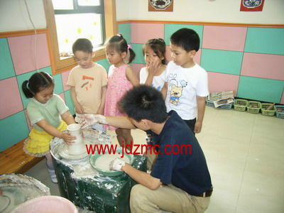 景德镇有全国中小学陶艺培训 基地,我们除了在课堂上让学生动手捏泥之外,还经常带学生前往基地开展丰富多彩的课外活动,使学生在陶艺制作和培训中得到锻炼,陶冶情操,领略千年陶瓷文明。