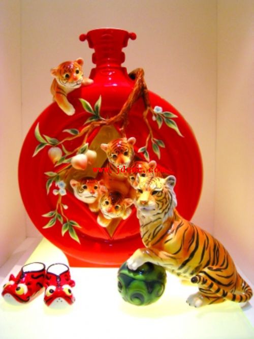 江西的瓷文化是中国瓷文化极具代表性的一种,青花、粉彩、釉里红是传统景德镇的瓷艺风采。而法蓝瓷是21世纪初期的一个崭新品牌,融合东方美学特征与西方新艺术装饰风格,运用特制釉下彩技术与烧制难度极高的手法,制成融合浮雕与雕塑的精致立体造型产品。景德镇法蓝瓷实业有限公司,为配合虎年的到来,推出多款虎年新品,设计师搭配不同巧思与美意,结合云纹彩球、吉祥寿桃、志气昂扬等如意祥兆传统,期盼祝福新一年。 霍铭炎 摄影报道