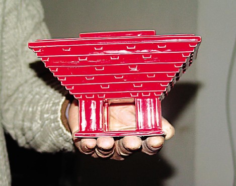 这位民间艺人名叫张茂生,今年58 岁,1972 年在市艺术瓷厂实验组工作,专门从事陶瓷技术、造型方面的研究。张茂生告诉记者,此次他所设计的.中国馆.陶瓷从去年就开始设计构思,在设计上攻克了许多技术难关,经过一年多的时间,才精心制作出几个样品送去世博会参展。陶瓷.中国馆.高13 厘米,长18 厘米,宽15 厘米,在设计中采用了一个密闭内胆的设计。