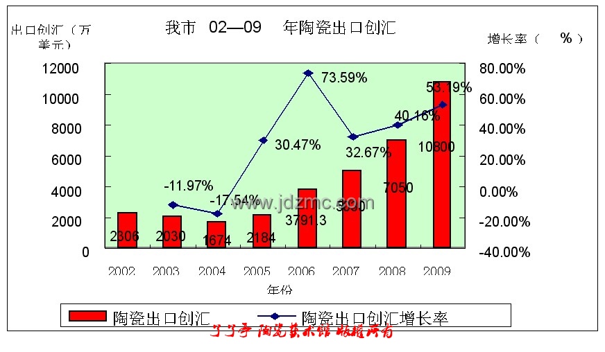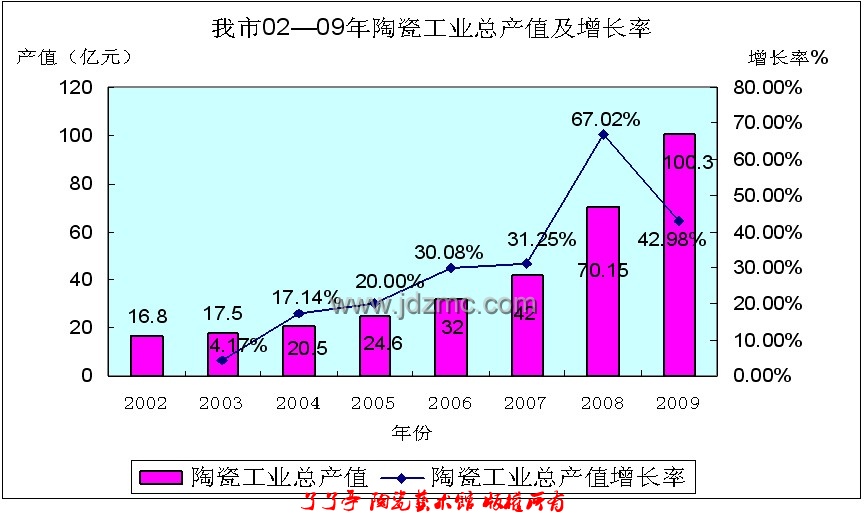 2002—2009年陶瓷工业总产值及增长率