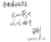 在古窑陶瓷展厅,王刚兴致勃勃地欣赏一件又一件陶瓷精品,每看见一件中意的作品,他都情不自禁地.啊.出声来,双手捧着瓷器,细细把玩,神情庄重,十分虔诚。临别时,王刚还欣然为《景德镇日报》读者题词:.文化薪火,代代相传.,并请记者通过《景德镇日报》向瓷都人民问好。