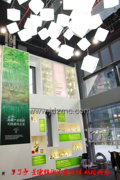 法蓝瓷品牌创立于2001年,2004年2月在景德镇市陶瓷工业园建立生产基地,2005年10月份正式点火投产。“选择古老瓷都一方面是看中了景德镇丰富的陶瓷人才、完善的陶瓷生产链条;另一方面从情感的角度而言,法蓝瓷落户瓷都有一种回到母亲怀抱的感觉。”厂区景色宜人,厂房宽敞明亮,还有标准的400米跑道、篮球场、桌球室、健身房、图书馆等功能齐全的生活配套设施。这是法蓝瓷的理念——工厂即学校、学校即公园,将工厂塑造成整合人文艺术与创意的生活环境。展厅精美的作品使观众赞叹不已,而每一项产品的底部,不仅有设计师的名字、还有雕模师的名字,法蓝瓷具备的现代版权意识,正是企业从“制造”到“创造”的分水岭。景德镇法蓝瓷实业有限公司总裁陈立恒则进一步指出:从选择陶瓷做为传递文化价值的媒材,就是环保的第一步,因为陶瓷在制作上挥发的有害气体最少(仅次于木材),并且产品使用周期高达二十年,非一般塑料可比拟。在制造上更采用无铅釉药,使用干凈的电窑设备和高级天然气来取代重油等高污染燃料;研发特殊的釉药与瓷土配方,得以降低瓷器烧成温度195度,减少30%的能源消耗;更在园区大规模种植数万株红豆杉与红枫等树种平衡二氧化碳排放,着重生态平衡,一步步实践法蓝瓷从减碳走向零碳的环保之路。他们要让世界高科技陶瓷技术与千年瓷都留下的陶瓷精粹相结合起来,生产出高附加值陶瓷精品。