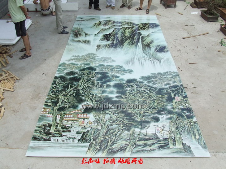 (彭禹旺)8月6日下午1点左右,由江西省工艺美术大师王卫平、邓幼堂、涂少波三人合作,至今以来堪称最大的粉彩瓷板画《高山流水》完美出炉,并启程运往南昌,于当晚连夜安装于江西国宾馆(前湖迎宾馆)1号行政厅。