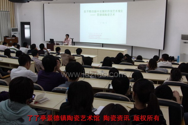 聘任仪式结束后,宁勤征教授在设计学院报告厅为学生们作了题为《在不断创新中发展的传统艺术瑰宝——景德镇陶瓷艺术》的学术讲座。宁勤征教授的讲座从陶瓷艺术的渊源、沿革和创新等角度为大家展示了历久弥新、不断发展的景德镇陶瓷艺术。深入浅出、内容翔实的讲座引起了学生的强烈兴趣和深度共鸣。