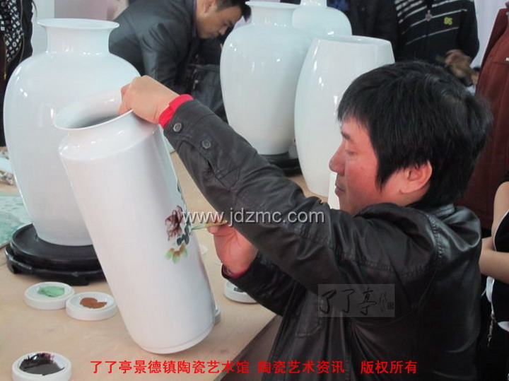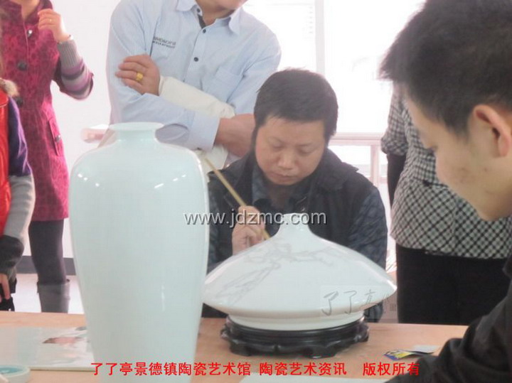 在认识张万莲的两年里,张万莲每一步都走的很稳很踏实,从仿古业转入当代陶瓷艺术,凭借着她多少年在仿古行业寒来暑往练就的扎实的功底,迅速的在古彩行业里面成长起来,而且时有创新。一位优秀的艺术家,贵在变,贵在谦虚,贵在坚持,这是张万莲拥有的品行。以下是此次参与笔会的艺术家有,汪明,陈其松,王智晓,张春勤,王华财,占晓初,在恒业的莲艺坊现场表演片段。