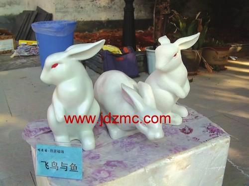 2010年的年末,中国轻工业陶瓷研究所(简称部所)艺术中心推出了三款生肖礼品瓷:中国工艺美术大师张育贤创作的瓷雕《兔迎盛世》;中国 工艺美术大师饶晓晴策划、指导,江西省高级工艺美术师陈望平设计的瓷雕《玉兔祝福》;中国工艺美术大师饶晓晴与江西省工艺美术大师涂志浩联手创作的《碟飞玉兔翠杨风》瓷板画。