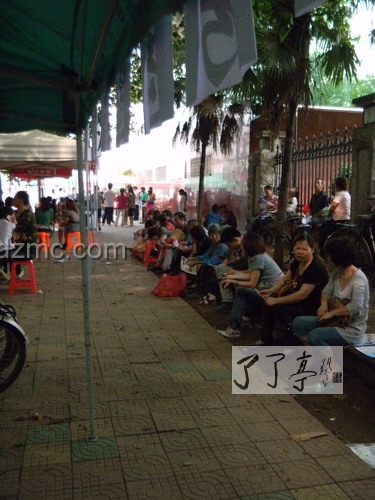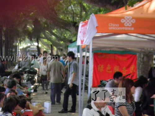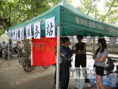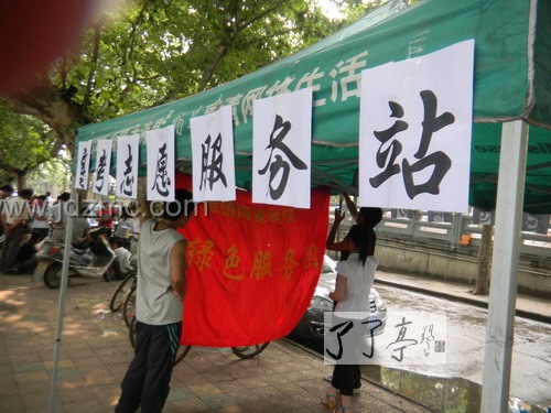 在景德镇二中考点外,来自绿色服务团的志愿者们搭建起一个高考志愿服务站,为家长们免费提供饮用水、文具、等物品,并对家长们有关高考和志愿填报方面的疑惑积极的进行解答,在这炎炎夏日为他们送去一丝丝的清凉。