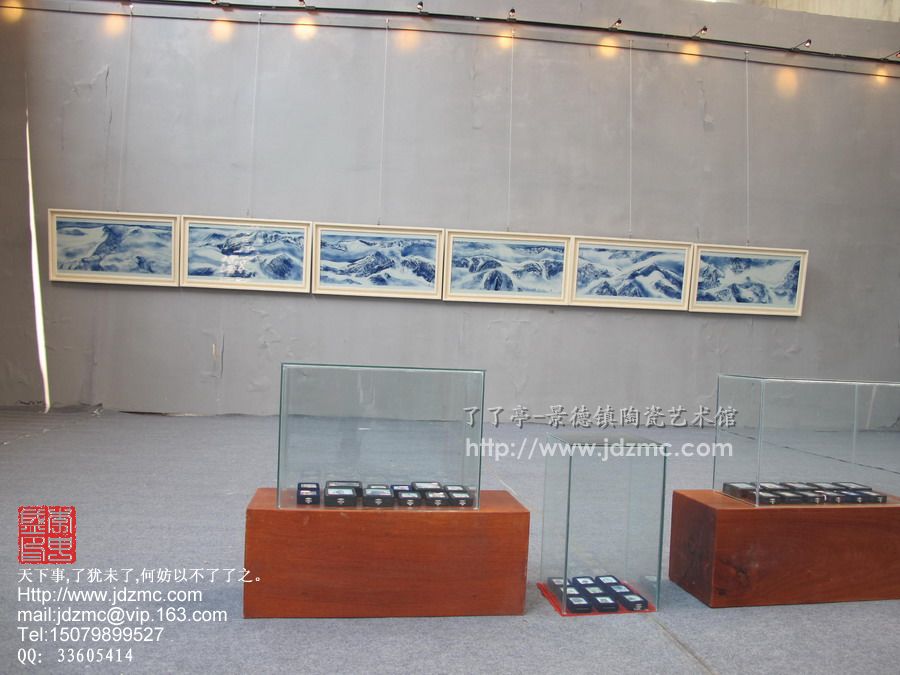 多件作品都是青花艺术作品。展馆的设计不同于其他展馆,整个展馆设计简单,没有海报、没有宣传、只有青花艺术作品。这样的设计想要突出的就是作品,只让作品“说话”,让大家感受青花瓷的艺术生命力。
