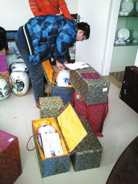 在征集现场,记者看到房间里堆放着上百件已经装好箱的陶艺作品,这些作品以瓷板和瓷瓶为主,作品风格各异,很有让人一睹为快之感。