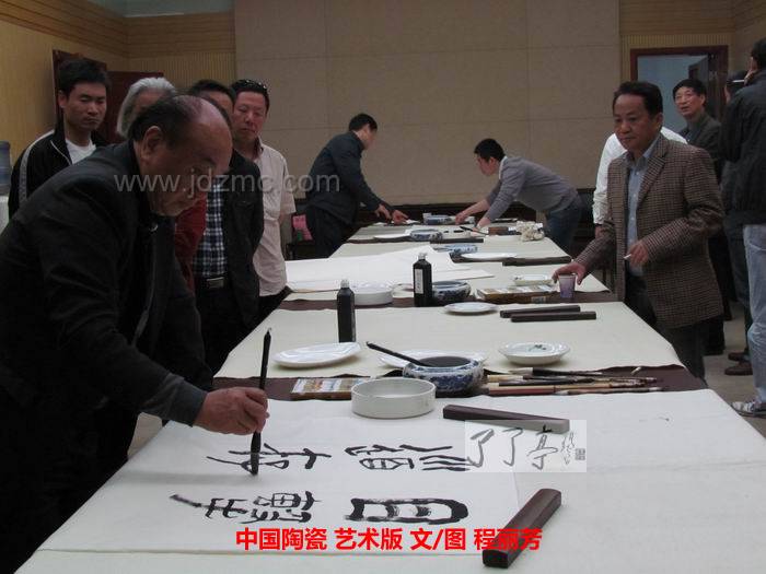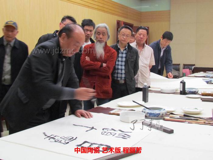 景德镇粉彩陶瓷研究院院长王寿霖代表景德镇陶艺家为第八届中国花卉博览会赠送了特制的月季花粉彩大瓷盘。据悉,月季花为此次花博会会花,同时也是常州市市花,而粉彩是景德镇陶瓷最有代表性的工艺之一,寓意两地文化交流之花常开常新。当地新闻媒体对此次活动现场跟踪报道,熊钢如老师接受了常州网的专题采访。随后,两地艺术家现场挥毫泼墨,在书法和国画创作上互相切磋技艺。