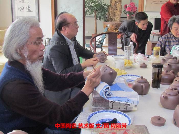 除了字画交流,景德镇陶艺家还饶有兴致地在紫砂上进行绘画创作。在中国陶都江苏宜兴,陶瓷艺术家一行拜访了紫砂界的领军人物徐秀棠老师,并参观了紫砂大师季益顺的工作室及艺术展馆“季畅园”。