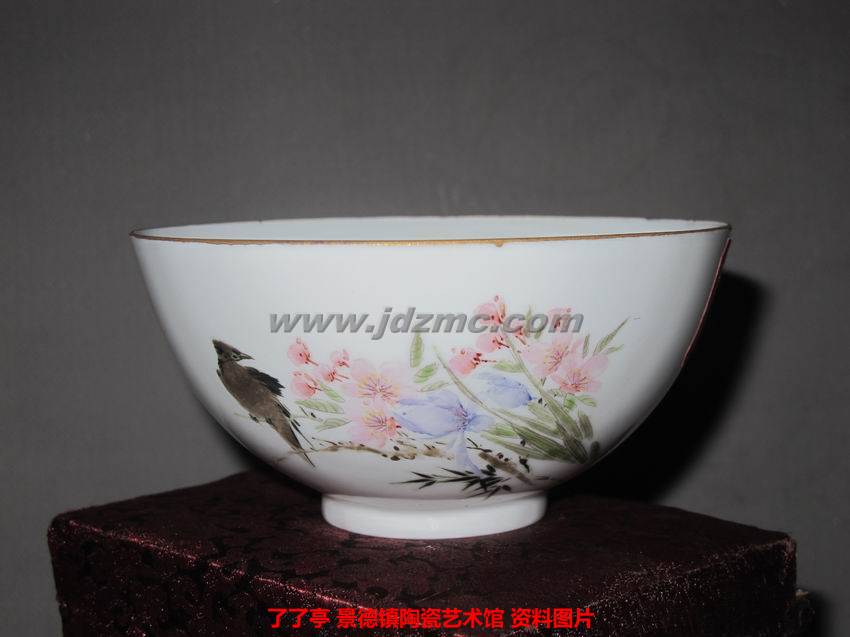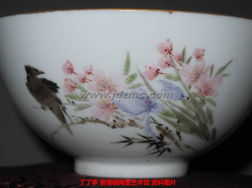 帮忙猜作者-为民瓷厂-粉彩花鸟薄胎碗