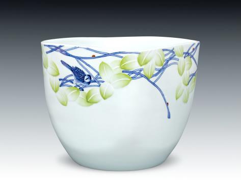 这款获奖作品采用了传统半刀泥雕刻和青花、斗彩相结合的技法,展现了一幅春天到来万物复苏的场景。枝头上的小鸟栩栩如生,两只小小的甲壳虫也趁着这春色开始出来游玩,还有翠绿的树叶无不焕发出春天的气息。