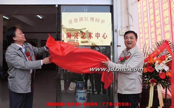 景德镇陶瓷学院党委书记冯林华,市文联主席余志华为红楼圆梦艺术中心揭牌
