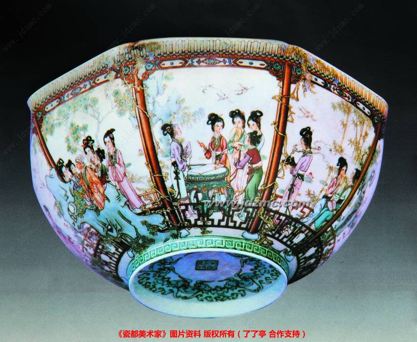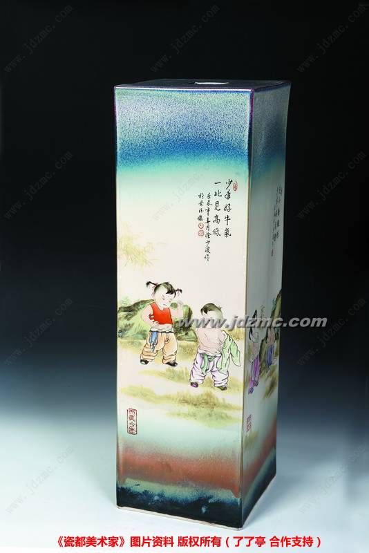 徜徉在“涂氏陶瓷艺术馆”的艺术品展厅,各类器型,各类图案扑面而来,令人目不暇接。但见陶瓷美术家涂奂庭老先生的作品多取材于生活中常见之物,尤以花鸟、走兽见长。其作品造型准确而洒脱,构图新颖而精巧,所绘花卉翎毛重彩工笔,颇有恽派风范;中国陶瓷艺术大师涂序生先生画路宽广,擅长粉彩陶瓷装饰,工于花鸟、走兽,尤精粉彩人物,作品线条或刚或柔,方规圆矩,笔力或痴或涩,开合稳宜,工写兼行,所绘寿翁稚童、名媛高士无不形神兼备;江西省工艺美术大师涂少波先生擅长人物、花鸟及陶瓷装饰,其作品风格严谨,清新高雅,构思精巧,手法细腻,其师承造化,深谙釉上装饰之工艺,所绘异花瑞草,灵兽锦禽、名媛皓首,无不因材施画,造诣深邃;江西省高级工艺美术师涂序华先生的作品以雪景山水、人物见长,其作品追求诗情画意,善于从自然风景和生活中发掘创作素材,其笔下琼峰冰川,谨密高古,粉彩雪景具有写实和装饰相融合的工笔重彩风格;江西省高级工艺美术师涂海波先生擅长花鸟、山水,其熟稔陶瓷材质,深谙陶瓷综合装饰工艺及技法,可谓“笔走釉上釉下,画汲人物山水”,作品题材多样,表现形式迥异,颇具现代陶瓷审美之情趣。