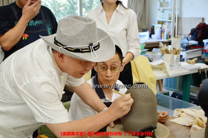 景德镇残疾人陶艺家们与日本残疾人陶艺工作者就陶艺制作技艺进行了友好切磋 时间:2012年7月18日14点 地点:日本奈良残疾人志愿者组织——蒲公英之家 景德镇残疾人陶艺家们与日本残疾人陶艺工作者就陶 艺制作技艺进行了友好切磋。国际残疾人陶瓷发展交流基金顾问、陶瓷艺术国家级技能大师李贵镇还现场进行了陶艺表演。