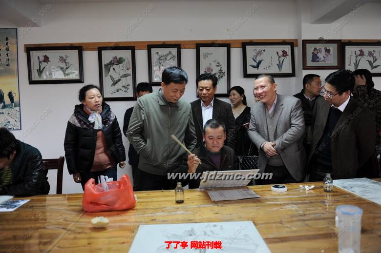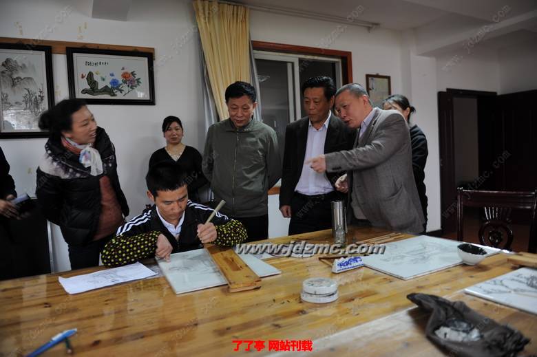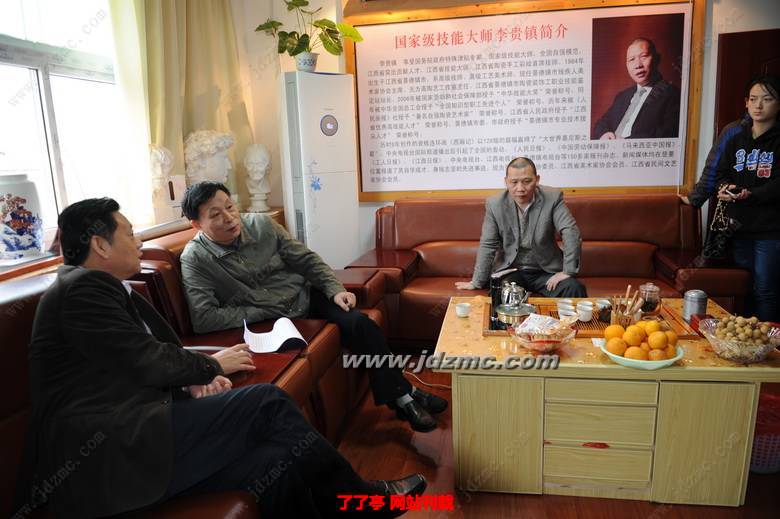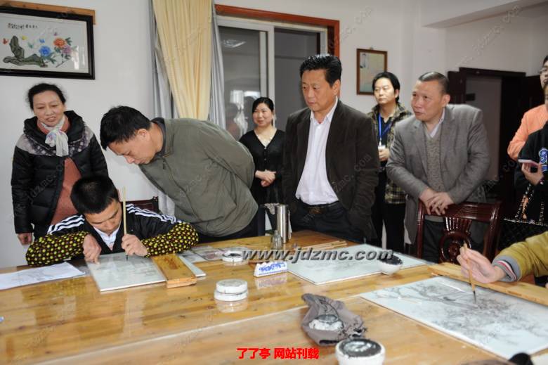 当黄康明、卢正大等走进培训大厅,他们仔细地察看了在这里的残疾人学员的学习情况。李贵镇向他们详细地介绍了这些学员刻苦学习的经过。黄康明副市长感慨地夸赞了李贵镇大师及这些学员:你们这种自强不息,刻苦好学的精神,值得全市残疾人学习,在景德镇的陶艺人才中,你们是一股不可忽视的力量。要求残联要大力培养和发展这股力量,为残疾人就业提供更高的平台!并鼓励学员要努力学习,学有一技在身,将来的生活会更好!当他们走到培训班老师江小平、周遇贵等身边,仔细询问了他现在是什么职称?作品到什么价位?得知其已经是江西省高级技师、高技能人才,其作品价格不菲的时候,高兴地对他们说:“这就是技能的力量!也是你们自强的结果。”