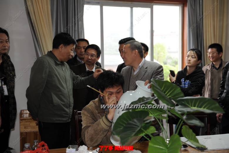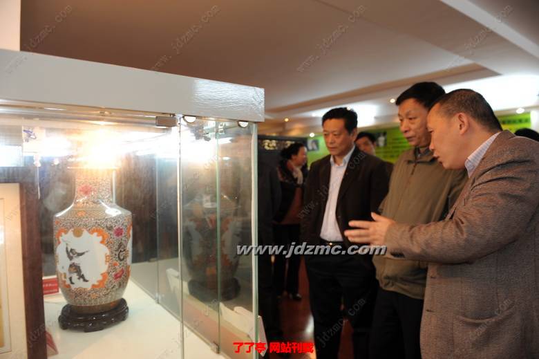 领导们在参观展厅的时候,副市长卢正大指着一副大型瓷板画向随行参观者介绍说;“这幅《大爱无疆》作品是陶艺泰斗王锡良,教授周国桢,陶瓷学院党委书记冯林华,大师李贵镇及陶艺家潘凯声联袂创作的。是为景德镇市2012年“扶残助残 共享和谐”主题活动创作的。是我亲眼目睹,见证创作的全过程。”领导及所有随行人员被展厅一件件残疾人陶艺家创作的精美陶瓷作品叹服!再次感谢大师李贵镇为景德镇的陶瓷艺术的发展,为残疾人事业,及景德镇市的高技能人才的建设做出的贡献!大师李贵镇向领导表示;有领导的关怀,我们会更加努力,我们残疾人会自强不息,奋发进取!继续为景德镇陶瓷艺术的发展,做出我们的贡献!