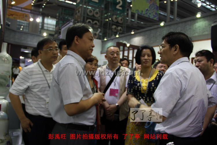 上午10时许,中共江西省委常委、宣传部长姚亚平带领全省十一地市宣传口领导来到了“千年瓷韵·陶醉鹏城——景德镇当代陶瓷艺术展”,兴致勃勃地参观了外地艺术家的作品,并认真听取了余志华关于景德镇文化产业发展的情况介绍,在展厅停留了半个多小时。姚亚平对景德镇市文联近年团结和引领艺术家不断创新,在文化产业发展中做出的成绩予以了高度肯定。姚亚平要求景德镇市文联认真做好两件事,第一、景德镇是千年瓷都,历史上有草鞋码头之称,历来是全国各地艺术家的聚集地,景德镇市文联应该努力为南来北往的外来艺术家搞好服务、提供良好环境、形成更浓厚的艺术创作氛围,让更多外地艺术家都愿意来景德镇做“景漂”,使“景漂”成为景德镇文化产业发展的主力军,带动全民创业;第二、景德镇是非遗大市,文联应进一步走向前台,会同相关部门,以创新、创意的工作思路,建立健全评奖、评先激励机制,大力推动非遗发展,使之形成产业,以文化产业推动景德镇经济的更大发展。
