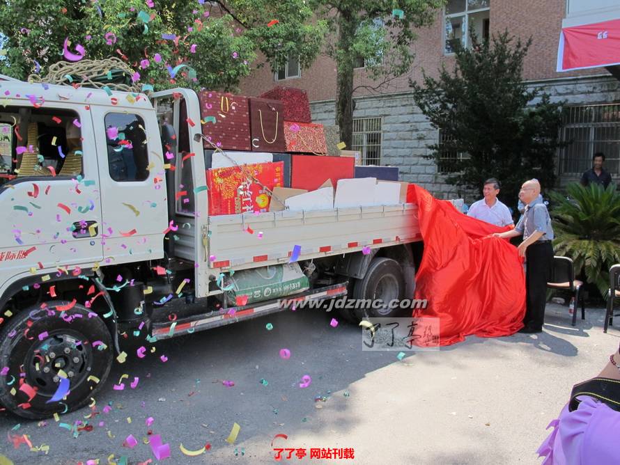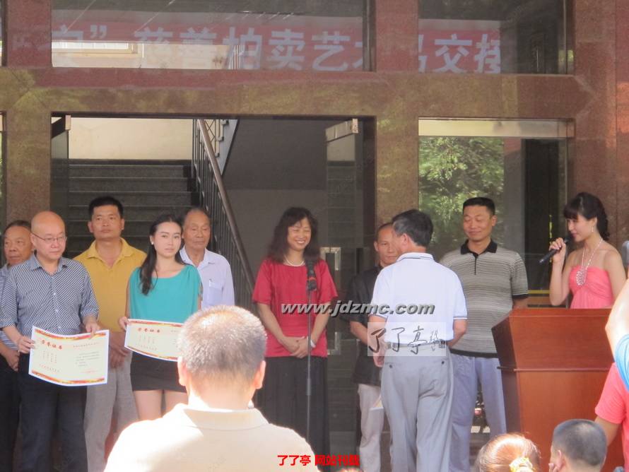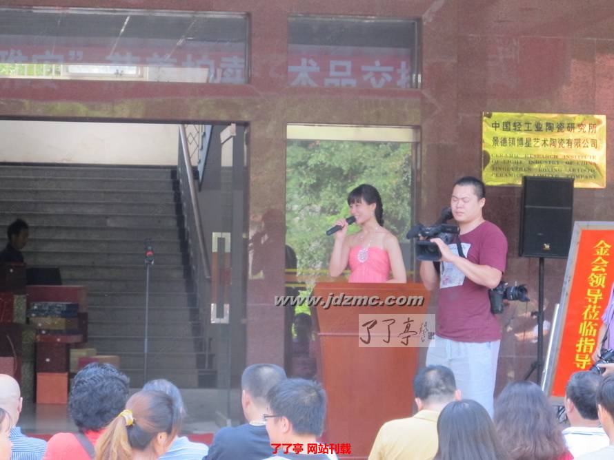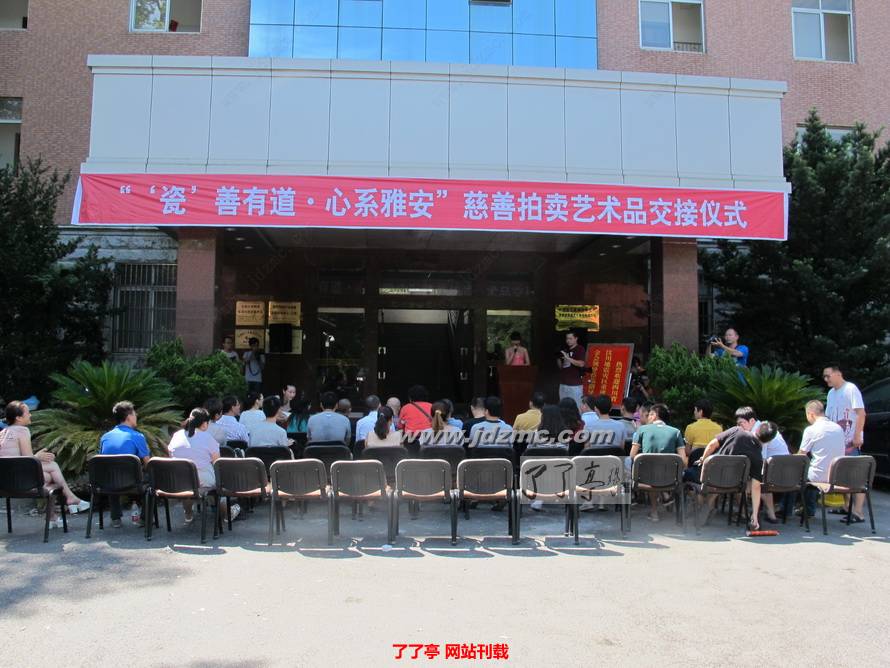 慈善拍卖艺术品交接仪式现场,在各位领导、爱心捐赠艺术家代表以及各大媒体的见证下将215件拍品交到四川省汶川地震灾区重建基金会专项基金处处长王陵手中。王陵、熊国亮、李川等人为已经装车的慈善拍卖艺术品揭幕。这批陶瓷艺术品即日将运往四川进行拍卖,并举办“"瓷"善有道,心系雅安”慈善拍卖会,所得善款全部用于灾区希望工程的建设。
