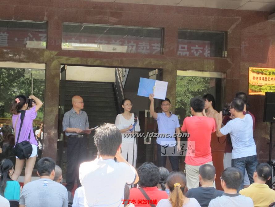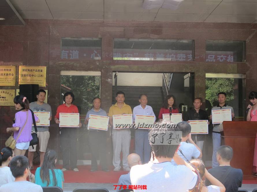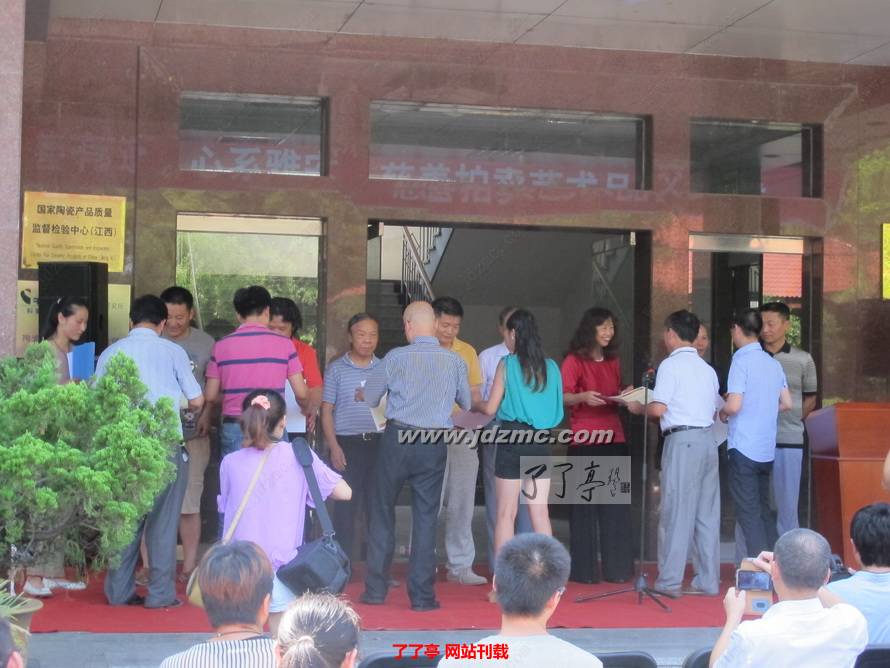 8月17日上午10: 00,“‘瓷’善有道,心系雅安”慈善拍卖艺术品交接仪式在中国轻工业陶瓷研究所院内举行。中国工艺美术大师李文跃、中国陶瓷艺术大师蓝国华、景德镇陶瓷学院副教授刘超鸿等作为捐赠方代表与受赠方四川省汶川地震灾区重建基金会专项基金处处长王陵对慈善拍卖艺术品进行交接。中国轻工业陶瓷研究所党委副书记熊国亮、《中国陶瓷》主编李川、《中国陶瓷》(艺术版)执行主编漆德三及四川古都古韵艺术品有限公司相关负责人参加交接仪式并为艺术家代表颁发爱心证书。