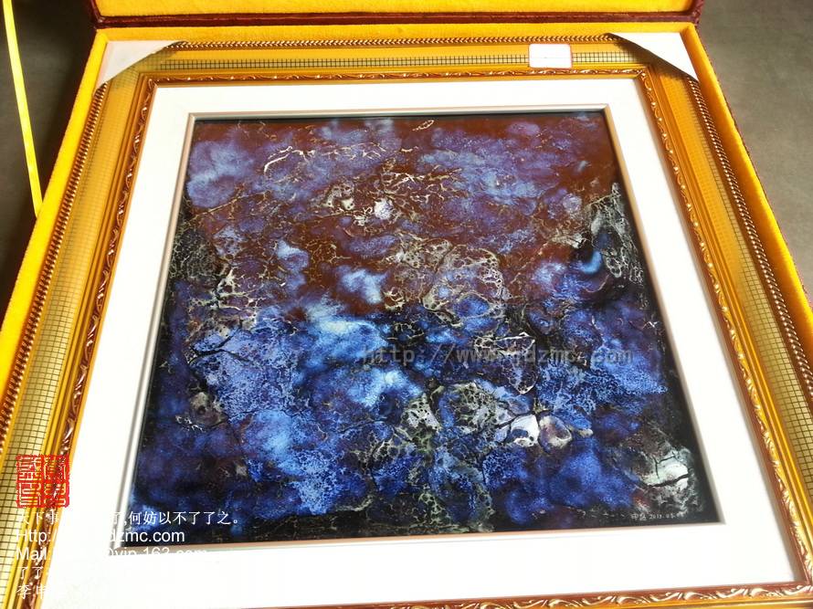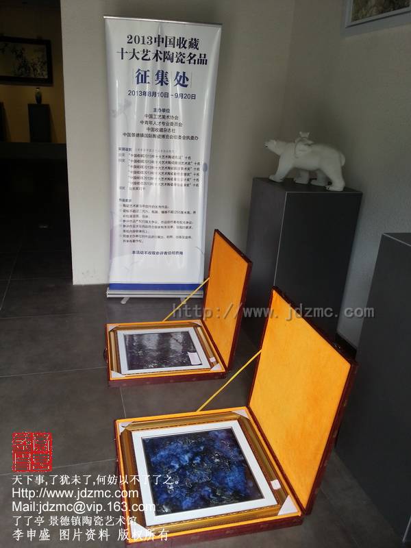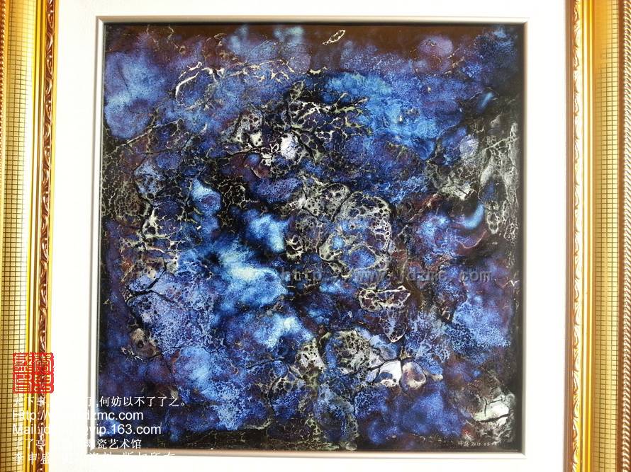苍穹--高温颜色釉的神奇在于创造神奇, 不以任何人的意志去强示“情与景”,一切都交于自然:不浮世、不虚无、不造作、不违意,烈火中的天成。此作恰似苍穹。“苍”之深青、深绿,“穹”之无际、无形…… 深黛--鲁迅在“故乡”中有一句:“两岸的青山……都装成了深黛的颜色。”多少次,去追寻“深黛”的美奇;多少次,去感悟“深黛”的奥密,在这里,倒有点微醉。高温颜色釉的神奇在于创造神奇。了了亭 李申盛/文