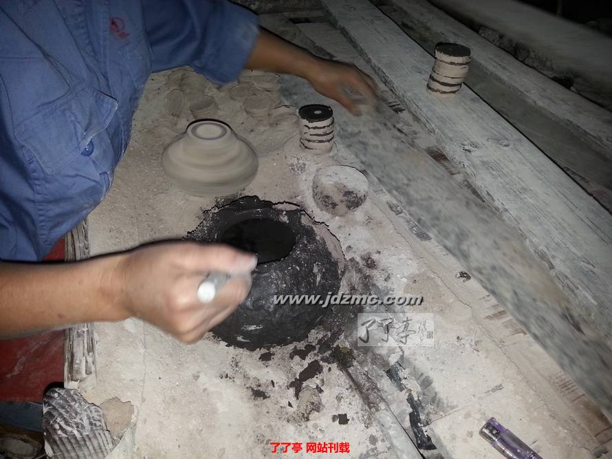 氧化铝的垫饼可以反复使用,两面使用,并且更为平整。高岭土的垫饼是一次性的,只能一面使用,工人涂抹的黑色物质是硼砂或者硼砂加氧化铝粉。