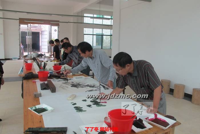 10月7日,景德镇陶瓷设计研究院大师工作室华灯璀璨,欢声笑语,来自湖北省美术家协会江上、商磊、夏少臣、谭英霖等国画家与本土陶艺家们一起吟诗作画,为景德镇国际陶瓷博览会奏起了艺术融融得声乐,他们在一起畅所欲言,讨论心目中的陶瓷艺术,同时幻想即将到来的瓷博会的盛况。“我们这次从湖北赶来,就是为了目睹瓷博会的盛况,希望此次瓷博会能够举办圆满。”据了解,此次创作的部分作品将在瓷博会展出。