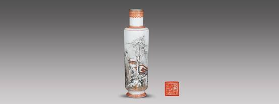 图1 余文襄《高阁临空欲插天·粉彩薄胎爆竹瓶》