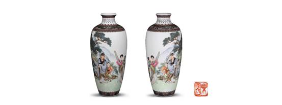 图2 王锡良《东山行乐图·粉彩瓷瓶》(1对)