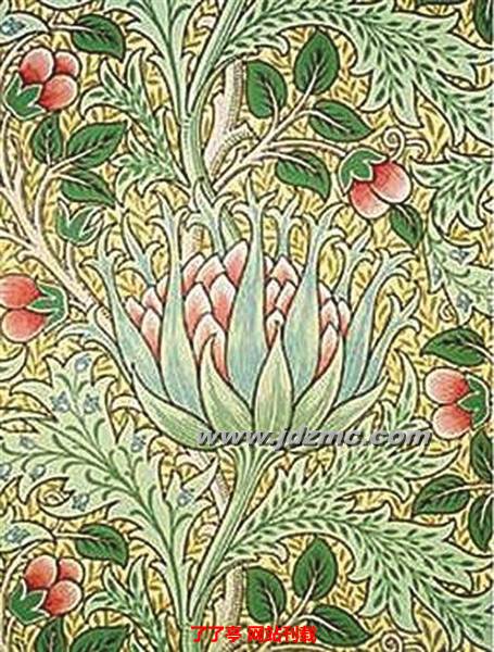 工艺美术运动的先驱一般说来有两个,艺术评论家约翰·拉斯金和艺术家、诗人威廉·莫里斯(WilliamMorris,1834-1896)。莫里斯认为“美就是价值,就是功能”。他的名言: “不要在你家里放一件虽然你认为有用,但你认为并不美的东西。”其含义自然是指功能与美的统一。莫里斯的设计不仅包括平面设计,也有室内设计、纺织品设计等等。他认为要复兴中世纪歌德式的风格,只有上述风格的设计才是“真挚”的。以莫里斯为首的工艺美术运动设计家创造了许多以后设计家广泛运用的编排构图方式,比较典型的有将文字和曲线花纹拥挤地结合在一起,将各种几何图形插入和分隔画面等等。