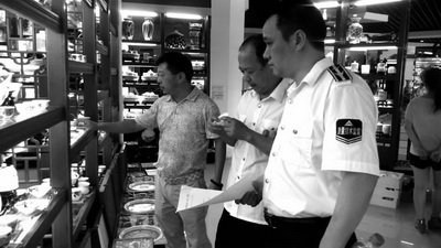 8月7日上午9时许,市质量监督局的工作人员来到了中国瓷园陶瓷市场,对店铺人员出示检查文件之后,对店内产品及外包装是否标注了厂名、厂址、产地和产品执行标准进行了检查。