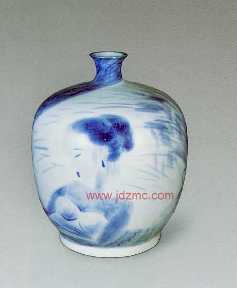 五年前应黄山画院叶森槐先生之邀进景德镇珠山一家小窑(记得是叫做江君窑)画了十几个瓶瓶罐罐。烧出来之后,好的挺好,坏的挺坏,糊糊涂涂地也就过去了,反正是自家玩儿玩儿。 此次中国收藏家协会组织画家画瓷,算是又当了一回画瓷的门外汉。 说起门里门外,当然是指宣纸上画画者与专门画瓷的工匠之间的门里与门外。好比是对门住着的两家邻居似乎面熟而又陌生,分别操着不同的营生,过着各自的日子。工匠也会写写画画,很多人的画在一般意义上说也还不错,但终究不算行内。算是到邻居家串个门儿。画家画瓷自然也是偶尔到对门转转而已。二者虽都画画,却有着极大的差异,工匠乃专事其艺的匠者。这里有一般的画工,亦有造旨颇深的大师,沦画瓷他们当然是门内,画者就是专事在宣纸上涂涂抹抹的画家,画家纸上挥毫泼墨自然是画画这个行当的门内。 这次画家画瓷算是干一件门外的事,外行的事。因其外行,自然也就没有行气。我的主见就是依然我行我素地涂涂抹抹。可以不必追寻工匠们的规矩,匠人或工艺大师们画瓷自有一套完整的格套、套路,程序。他们是造器的专家、行家。或是说画瓷造器是他们的本分。匠者是至善论者,画者是至情论者。这种差别是各自存在的意义所在。 画家画瓷的法门就是灵性、性灵.自在、随性。性灵是何物?惟我知之,绘画艺术之性命实寄托于此。故言性灵之画家必排斥匠人,因为学匠人不但不必要,实亦不可能。奉性灵之画者亦必排斥格套,套路,排斥程式。往往意之所到自成佳境凡出于画家个人真知灼见,至感至诚,兴之所 到,情之所至,必能引动他人。 · 工匠或工艺大师自有其独到的造诣,其作品精到、精致,标准。虽是手工绘制都能百件千件皆能成物。更难的是工匠们百件千件皆能件件同质,这是工匠的本事、工匠的饭碗。 我辈我所能者却是件件不同,件件惟一。一个构思,灵光一现,从无到有,象由心生,画完了也就是它了,再想重复一件必是不同,即使画两件看似相同的,实则天时不同,性灵不同,画出的必是不同,如敢再重复第三件则性变,灵失,神消。万万不可为。 画瓷不同画画,瓷画完了仅如女子怀胎,要经过那一千三百多度高温14小时的孕育,方能见其灵性,也许烧出来的自有神品,那是火的神秘力量的赐与,大多数不尽人意。如果经过火的煅烧,出来几个充满灵性之美的器,则可视之为宝物。何以见得?画家画瓷是偶尔为之,没有熟套,也 就不会落人熟套。画家的修养、学识、构思,特别是天,地、人三者之性灵的一瞬,不可重复,一件就是一件,只此一件。 面对摆在案上或瓶或罐的素胎,观其形,取其势。心日中有一个基本的构思、取向。展开想象的翅膀。在那些素胎上我似乎看见了山岳冲天而起,吟咏寒江钓雪的诗心,遥祭天地大美的女媚,品味吹箫女子的恬淡幽静,手握用惯了的毛笔调合如同水泥桨一样的青花釉料。一·旦下笔,笔笔生发,随方就圆,顺势而为,求其自在。未来的模样月朦胧鸟朦胧,不见得成竹在胸,所谓成竹在胸在此并非赞誉之词,因为胸有成竹者易患匠人之气。自由自在,涂涂抹抹,不事雕琢,一生二,二生三,虚虚实实,疏疏密密,左顾右盼,举重若轻,统观全局,取合适度,当放则放,当收则收,放则尽情挥洒,收则刻画人微,随机应变,意到神随,从无到有,一气哈成,方能有趣,有味。其间难免有瑕疵,在我则不去管它,只要神在韵在。这是画家的本事。也是画家与匠人互为门内门外的分野。 做了两次画瓷的门外汉,始终不得人其门内,亦不想真的人其门内,说的就是溜到邻居那串个门儿。画家画画方是本分。即使哪年又来兴致再当门外汉,时变、意变、思变、人亦变。画出来的当又是另一番风貌,另一番意味了吧。 2007年10月急草于 北京一掌闲田斋