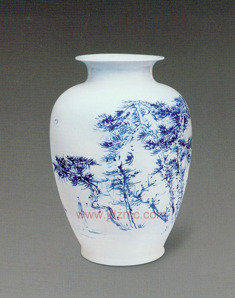 祁恩进,1 958年出生于南京市。现为中国美术家协会会员,国家高级美术师,江苏省国画院专业画家;中国工笔画学会理事。出版有《祁恩进画集》《名家名画——祁恩进作品》《祁恩进意;笔山水作品》等。 去年秋天,应朋友之约到景德镇的瓷厂里画了三天的瓷瓶,三天虽短但感触颇多。我们——行人来到瓷厂,面对别人已画奸的瓷作品时往往会情不自禁地评头论足,而当自己真的动手画时就根本不足你所想象的那么回事丫。面对瓷胎瓶,我有一种工也不是、写也不是,仿佛老虎吃刺猬无从下乎,欲罢不能的感觉。平时自己在宣纸上表现的那种笔墨趣味和感觉一点也发挥不出来。心里特明白:无论绘画还是书法,一旦失缺了感觉,失缺了意趣,那实在是件令人乏味之事。古人云:“绘事若烹小鲜,如若这小鲜不鲜,且也没味,那恐·旧是很难让食客满意的。” 记得二十多年前我到景德镇瓷厂看工人师傅画瓷的场景:他们坐在一个坑道边双脚伸在坑道下不停地转动着木轴的转盘,右手拿着蘸了青花颜料的画笔,左手托着碗坯,飞快地在上面画着竹叶,图案、线条,那速度之快简直如魔术一般,转眼功夫一件精美的竹叶图案即告完成。那劈出的竹叶绝不逊色于郑板桥笔下的竹子。这一‘幕我至今记忆犹新。 在瓷厂里我一连画了奸几个瓶子,可以说都没能找到想要的感觉。情急之下,我泛起我的一位老师曾说过的一句话:“作大画要讲气势,小画要讲求趣味。”是啊,咱这不是在作小画吗?!既是小画当以“简、拙、趣,稚”为重,若在这上面堆砌繁山复水不但画者累,观者也会觉着不轻松,也难有美感可言。 边画边想,边想边画。自己也在不知不觉中进入了状态。回想此次活虽有些辛苦,但还是挺有意义的。但愿下次碰瓷会比这次画得更好。2008年4月5日于南京