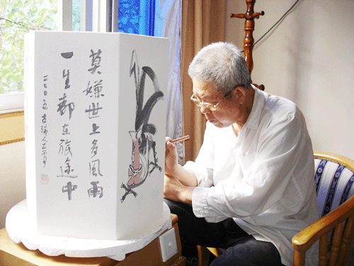 薰风五月,我又启程赴景德镇画瓷。那边厂家为我准备了一些胎子坯子。画瓷,是件让人愉悦的事情。厂家在厂里等候,寒暄几句,我就开始动手了。青花色料、釉里红、沙红,朝坯子上涂抹。高高的瓶子,下边画上美丽矫健的锦鸡,上边画着盛开的绣球花。题字:锦绣江南。紫藤绽放,一群金鱼在藤下池中悠游戏嬉戏。题句:欢乐的春天。桃花开了,雄鸡在花丛阔步前行。题句:一路春风。画母带小鸡,小鸡依偎在鸡妈妈身边,而鸡妈妈,一副慈祥的神情。以前也是画过这个题材的。借用台湾歌曲的曲名,就题:世上只有妈妈好。可后来一想,如此题法,将置爸爸于何地?而且,许许多多爸爸也都是好爸爸。于是改题:慈母情怀。 人生活在世界上,文字家艺术家们生活在世界上,他们的作品,也都是有感而发的。我自然也这样。我画一群鱼在瓶子上欢快地游玩,题:水清鱼自乐。又是游鱼数尾,且神志悠然。题句:生就悠游态,苦乐何人知。中国的艺术,常在意象中表达。开门并无门,骑马并无马。还画于数尾,似乎在奋力前行,题句:只画鱼儿不画水,自信此中有波澜。画一群鱼上下游动,上的少,下的多。题句:顺流归大海,逆水到源头。这似乎反映着人们不同的追求。这中间,自是顺流者多。画三尾鱼茫然相对,还画上曲曲湾湾水纹。可仔细一看,那水纹全是疑问号。题句:不知道怎么来的?也不知道怎么回去?知道怎么来的,也不知道怎么回去?糊里糊涂来的,糊里糊涂回去。我想,地球上的许多生命,对于自己的存在与消失,大概都是这样不明不白。还有美丽的幻觉:明月在水底,鱼游广寒宫。而更多的感觉是对天地万物的动态体验。天也圆,地也圆,日月星都转圈。路是圆的,没有起点也没有终点。路是圆的,又处处是起点,处处是终点。我画鱼在瓶上转着圈子游着,题的就是这样的句子。我们人也都是在转着圈子的。也知道自己的起点和终点,生命的、事业的。。。。。。 日日池塘里,亦思江海无?日日江海里,亦思池塘无?思忖依旧池塘好,江河湖海风浪多。思忖依旧江海好,池塘何以展宏图!我在设想着鱼们的思绪。这和《围城》的心态是相同的。人向高处走,可“高处不胜寒”。“采菊东篱下,悠然见南山”,也是一种人生幸福。我很喜欢画朝阳。一只雄鸡昂扬前行,头顶旭日初升,曾 有长题: 云也多彩,霞也闪光,冉冉升起是朝阳。 花也绽放,露也芬芳,喷撒光华是朝阳。 笔寓刚柔,墨有清香,兴起挥毫是朝阳。 人也坚强,心也坦荡,天天前进是朝阳。 国也兴旺,民也安康,神州崛起是朝阳。 我画瓷,也都是画我的心境与感悟。 |