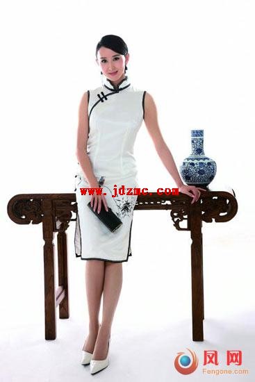 胡静的白绸青花旗袍,开一时风气。 清韵时光流曳,岁月浮沉,千古不变的是她的绝美。温润的白色、雅致的青花…… 青花瓷最大的特点,在于其脱俗的清韵。当她与旗袍相遇,那么最美不过衣襟上的一领青花绣。不需要更多的缀饰,这是留白的艺术。 胡静的这款白绸青花旗袍,将温润的肤色、细腻的白绸以及青花绣结合起来,充分展现了东方女子的清韵。