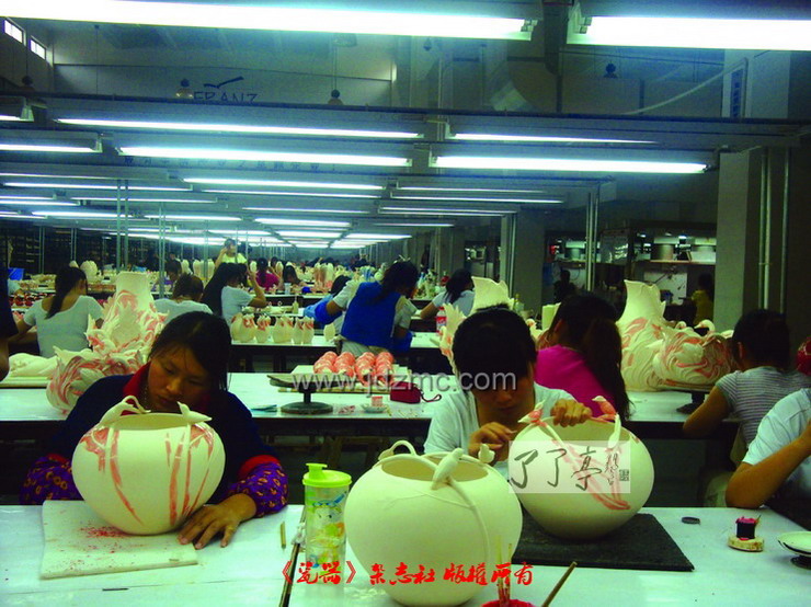 这是一个老生常谈的问题,本刊多位撰稿人也对此提出过质疑。从当代陶艺市场勃兴开始,掌握着绘画工艺或雕塑技术的人们从中得到了丰厚的回报,而从事拉坯、利坯等其他工序的工人所获回报却未得到改善,两者的差距最大时相当于蓝领和富翁。