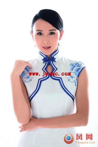 清韵时光流曳,岁月浮沉,千古不变的是她的绝美。温润的白色、雅致的青花…… 青花瓷最大的特点,在于其脱俗的清韵。当她与旗袍相遇,那么最美不过衣襟上的一领青花绣。不需要更多的缀饰,这是留白的艺术。 胡静的这款白绸青花旗袍,将温润的肤色、细腻的白绸以及青花绣结合起来,充分展现了东方女子的清韵。