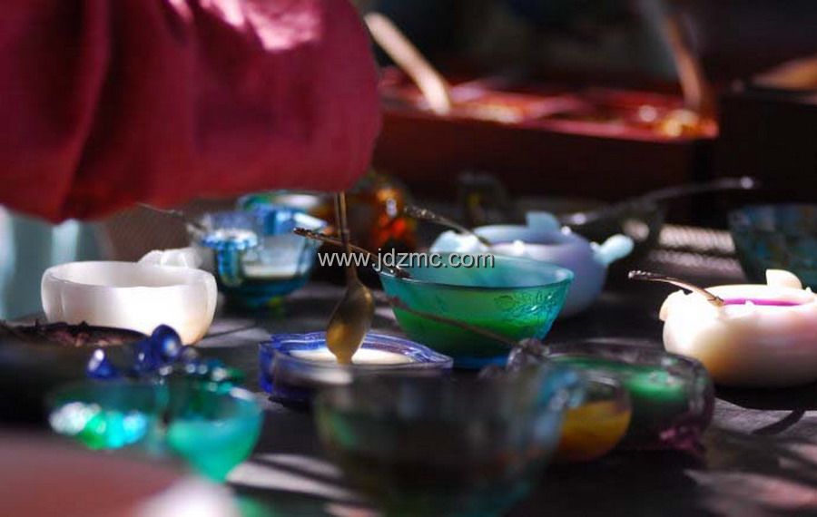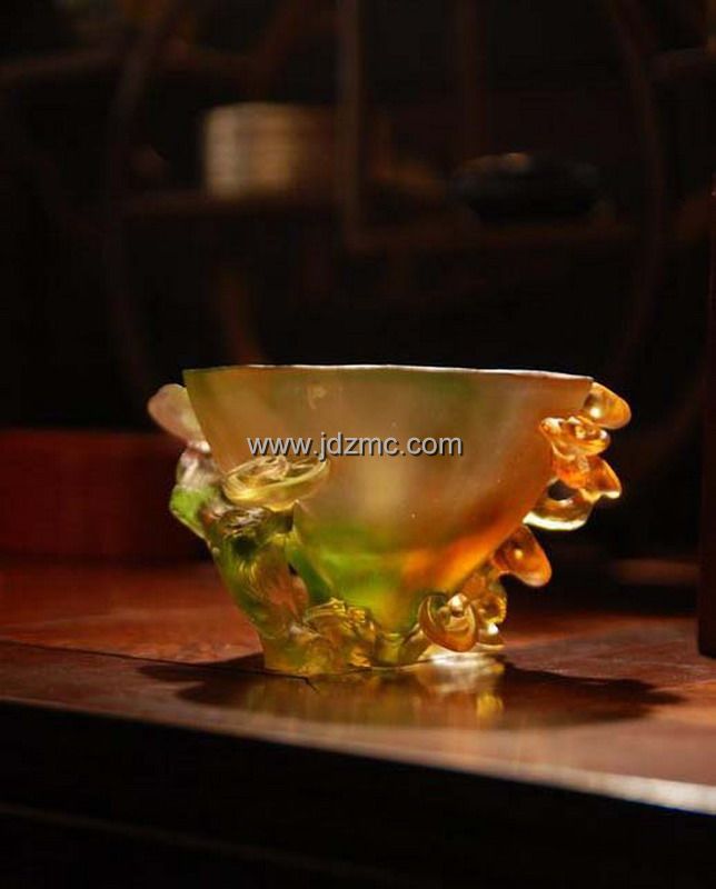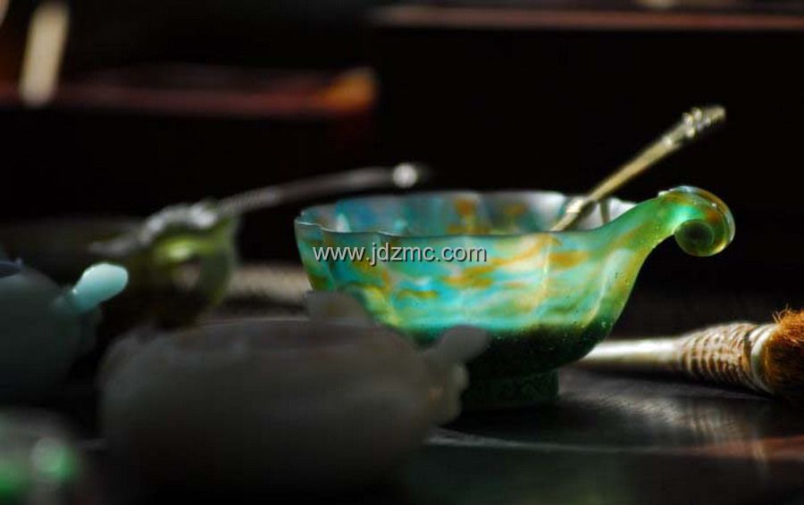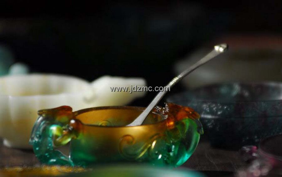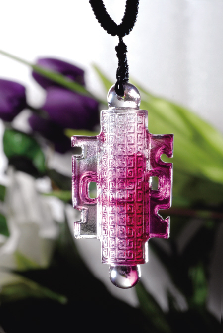 曹雪芹在《红楼梦》描述通灵宝玉“大如雀卵,灿若明霞,莹润如酥,五色花纹缠护”,由贾宝玉随身佩戴,贯穿整个剧情。通灵宝玉为女娲于大荒山无稽崖炼石补天的遗物,是历经水火淬炼的结晶,这正暗合琉璃“用水晶脱蜡铸造法高温烧结而成的”工艺特性。