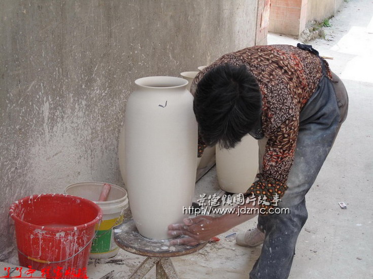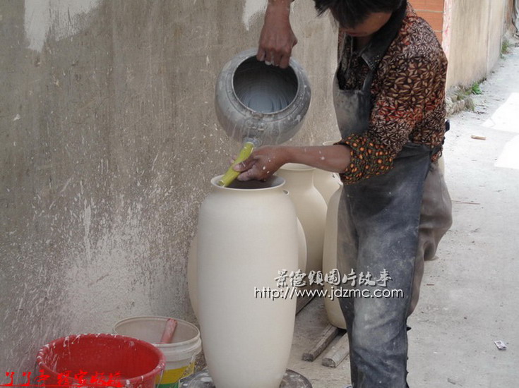 大瓶子里面那些白釉是如何施釉上去的,通过以下组图您就完全了解了。