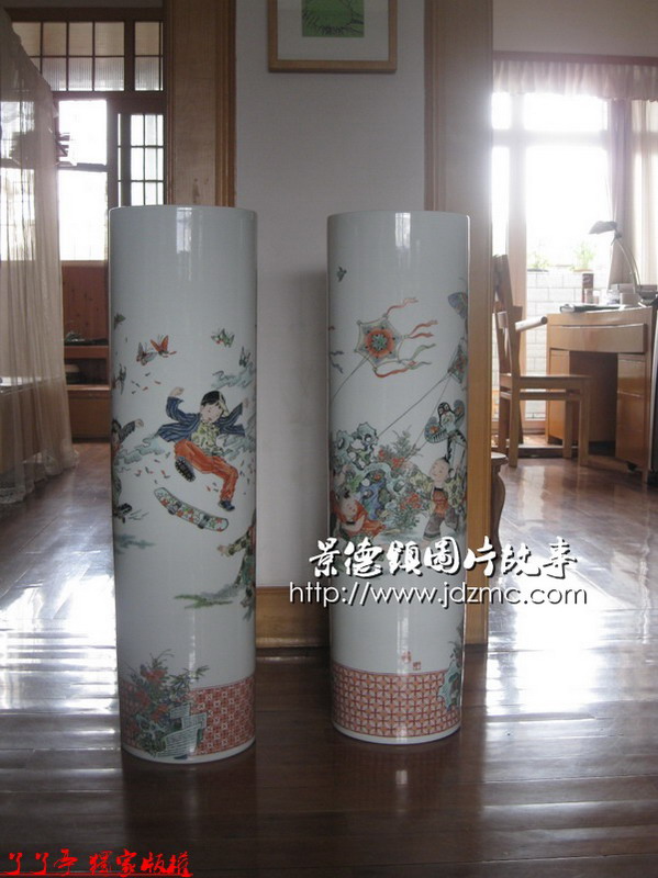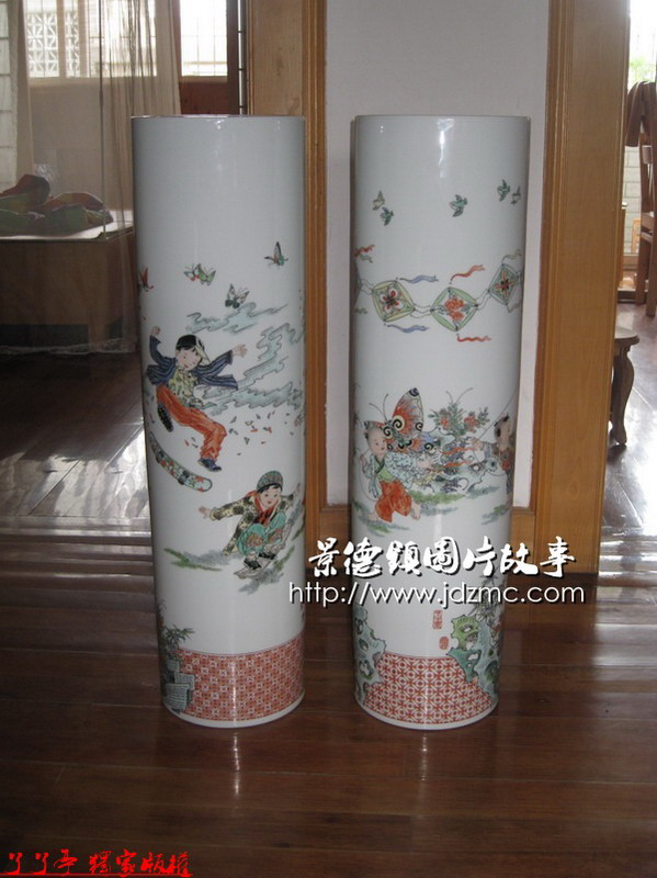 李磊颖老师两个古彩箭筒是500件大小,画面活泼,色彩鲜艳。讲叙的是古今两个时代儿童喜好的游戏。李磊颖老师准备这两件作品是参加比赛评选的。