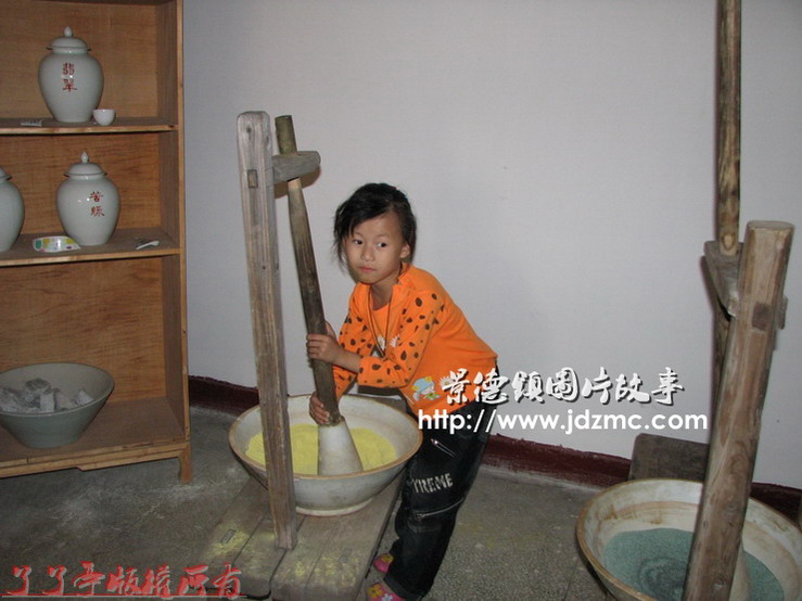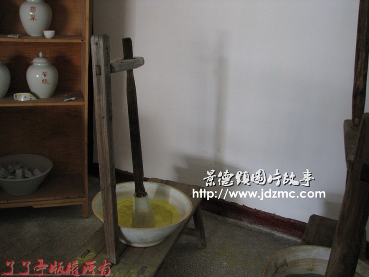 瓷业分工很细,每一个工序都做了分离,如图片对料的磨制。