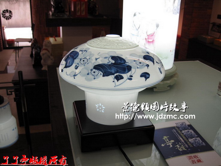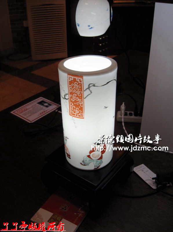 景德镇高档的瓷器台灯是一个空缺的市场,以前一直是由名人绘制薄胎皮灯来填补,现在已经开始批量生产。