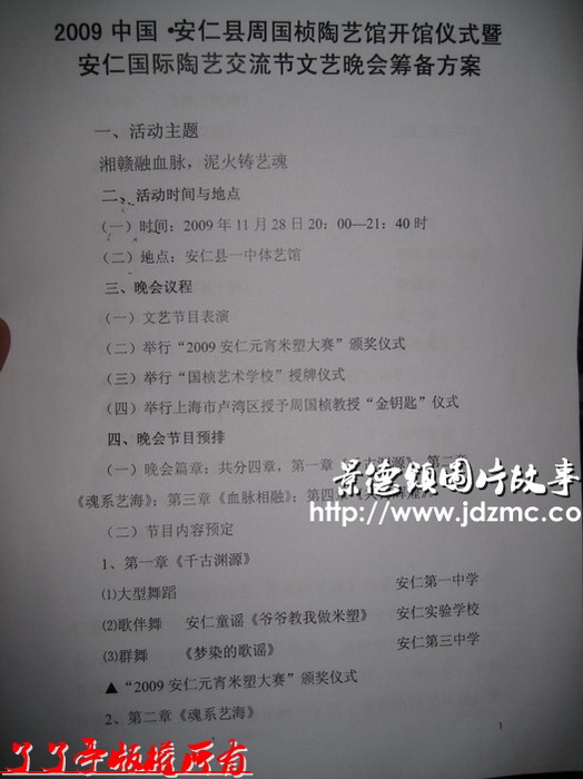 作为周国桢老师的嫡系,笔者主要负责协助交换景德镇瓷业其他艺术家馆藏赠送作品,因而今晚大家开了一个碰头会。附件有安仁县全部活动的安排计划表。