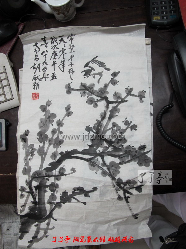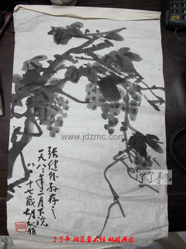 这是胡献雅的后人送来的几张国画和书法作品,真伪只有通过胡献雅的书画集来判断了。